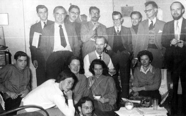 | Au premier plan compl�tement � gauche Robert & Barbara Silverberg | John Brunner & Ted Carnell |